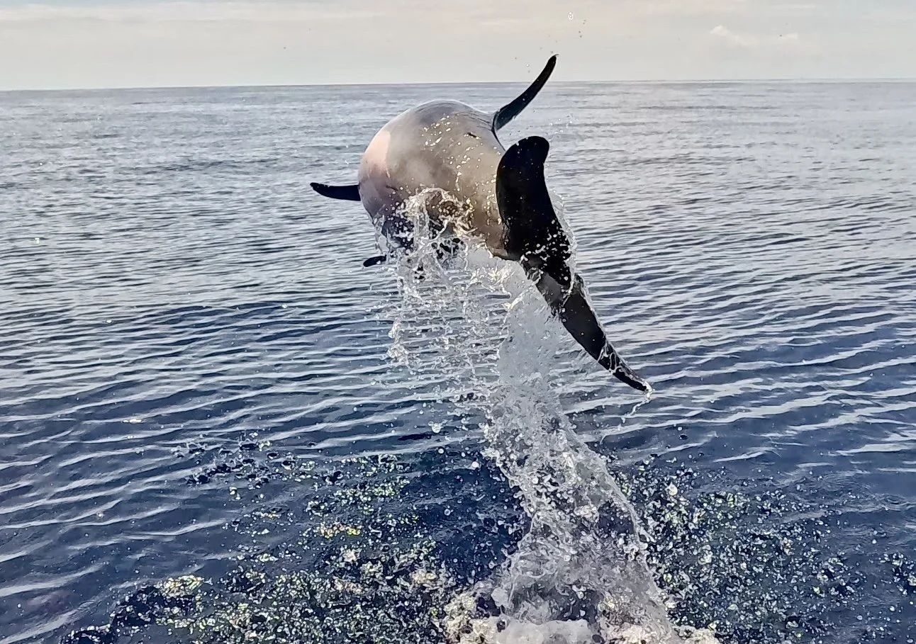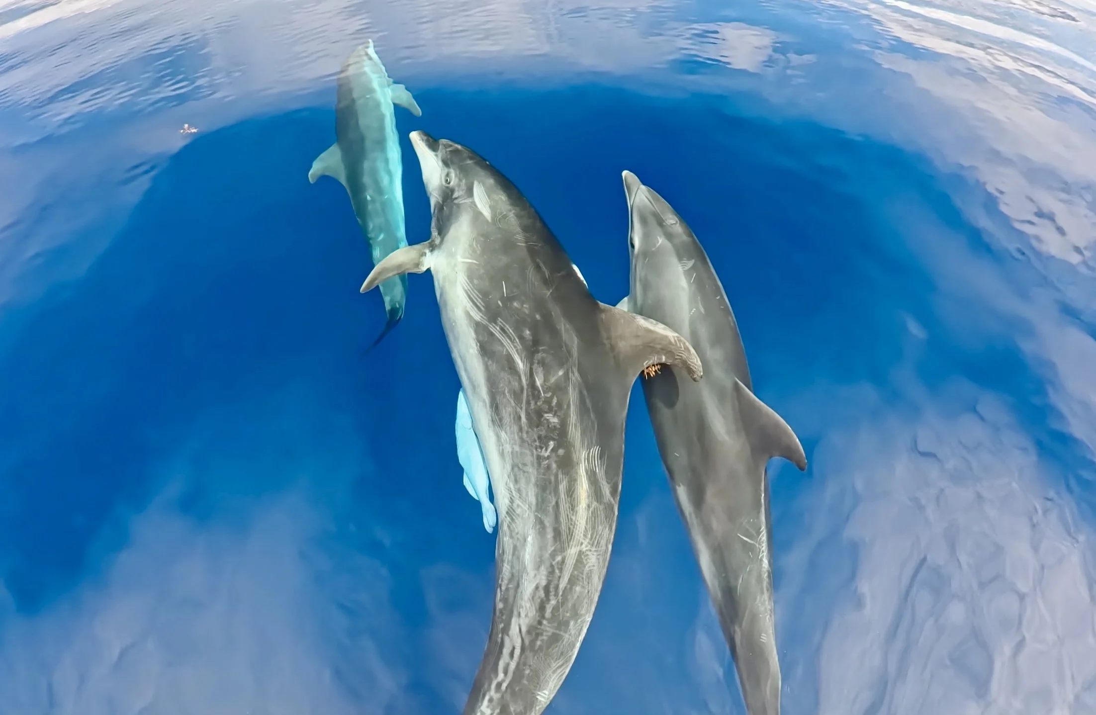 “We also conduct Cuvier beaked whale research, identifying individuals by the scars on their backs with photos taken from the boat and drone. GPS positions logged each time we find Cuviers enables us to locate them with regularity. We have obtained aerial footage of the Cuviers on numerous occasions.”